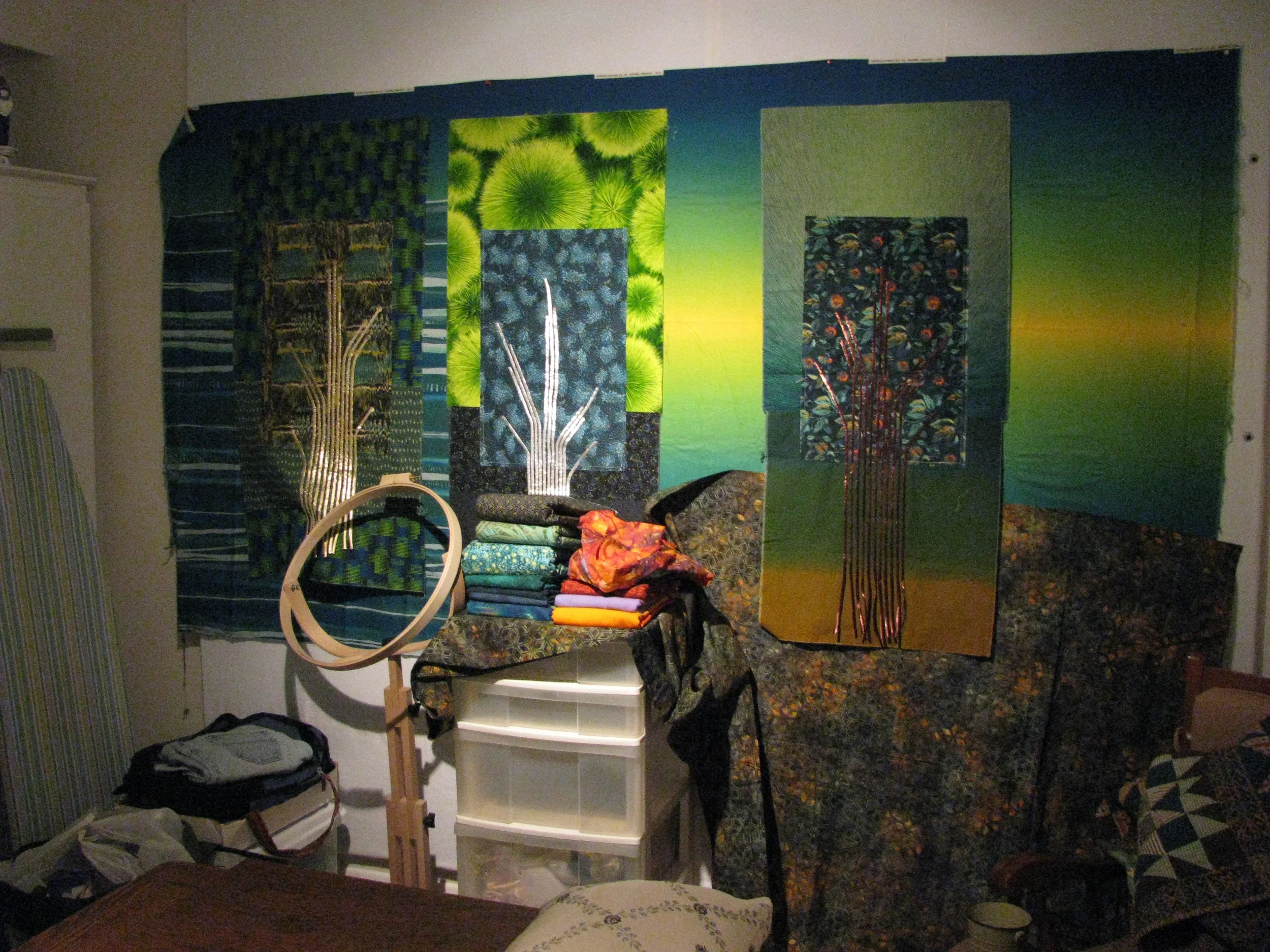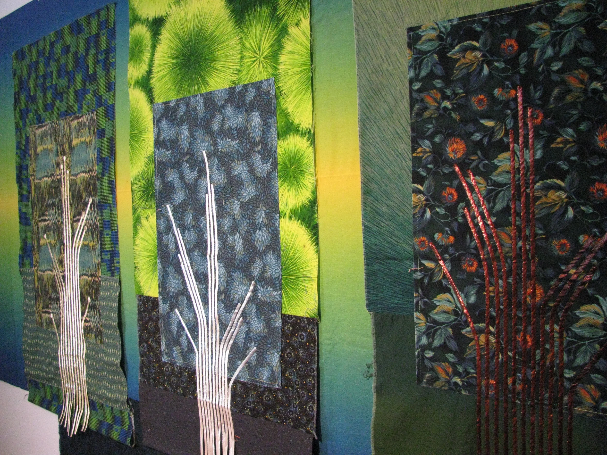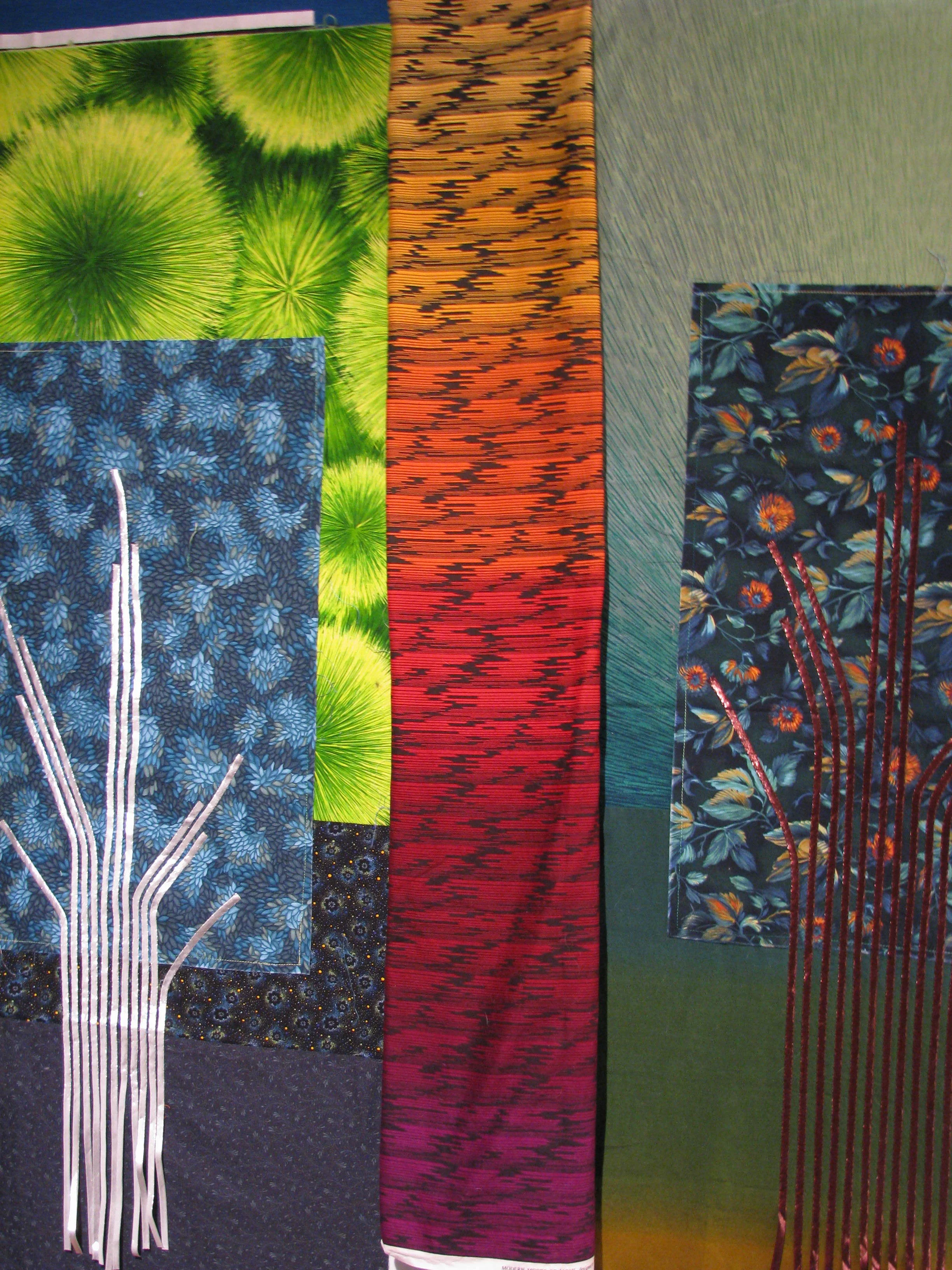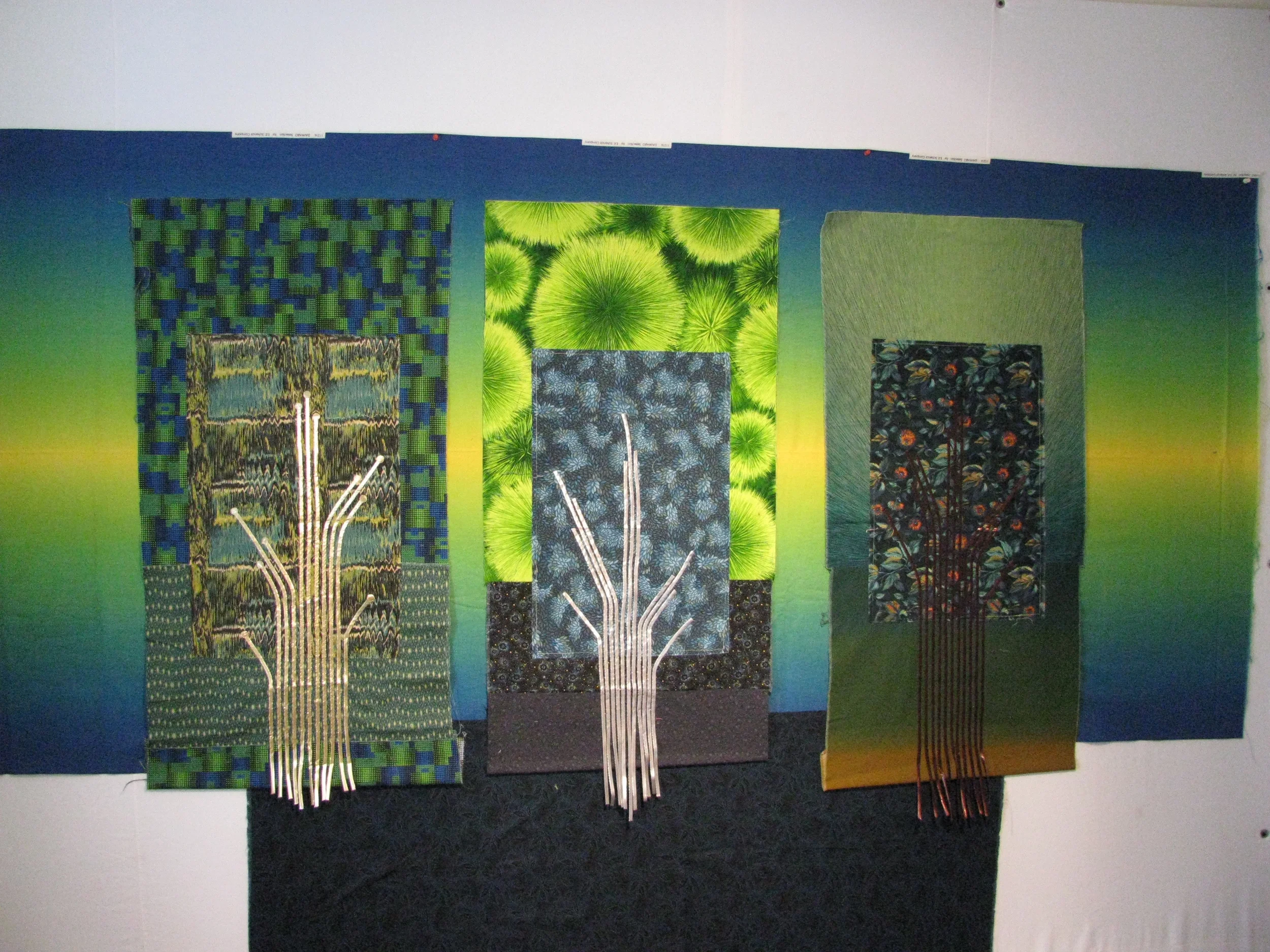 A thoughtful viewer at a recent quilt show suggested that I should add another panel to the quilt for "Reflection"; maybe a quiet pond at the foot of the trees?