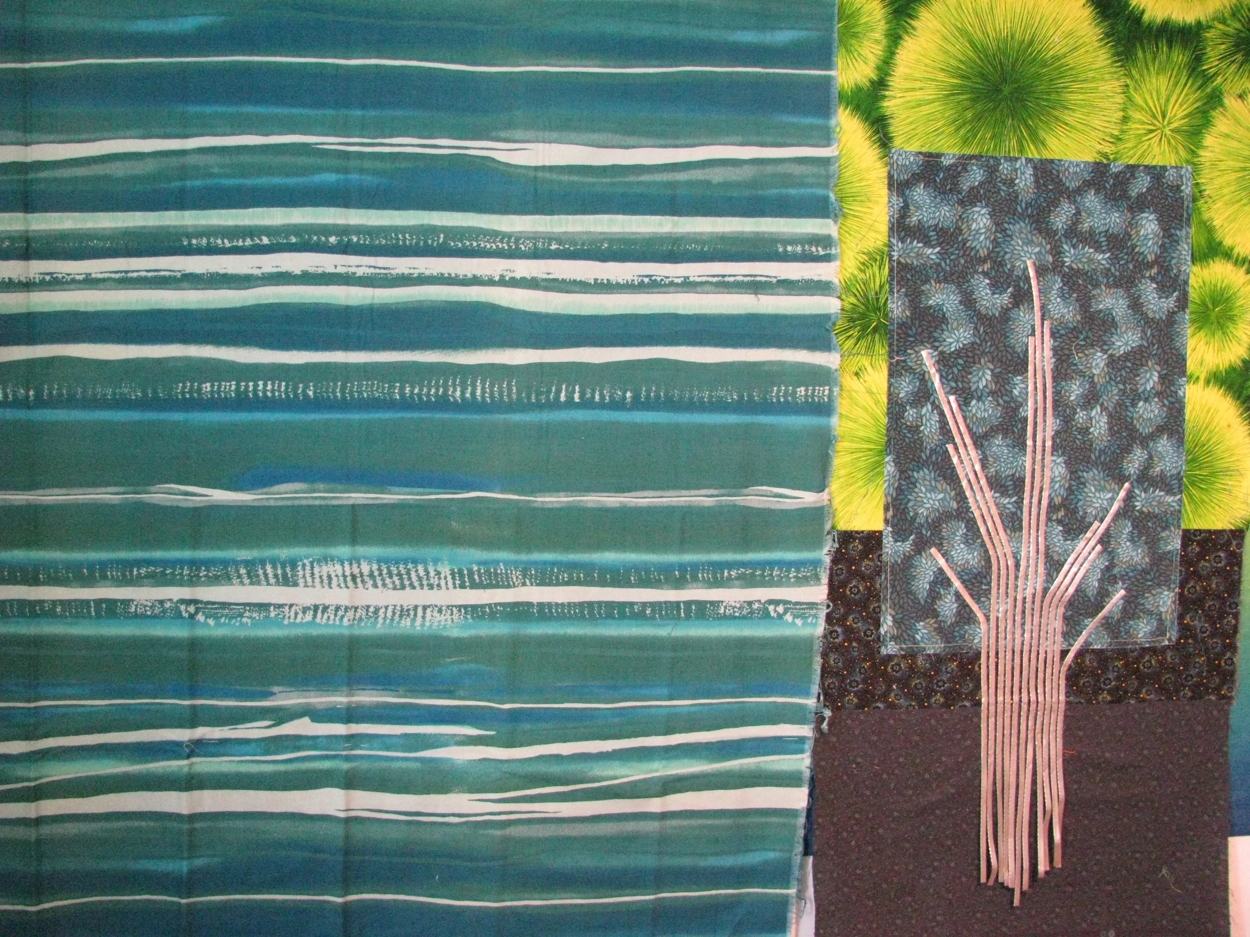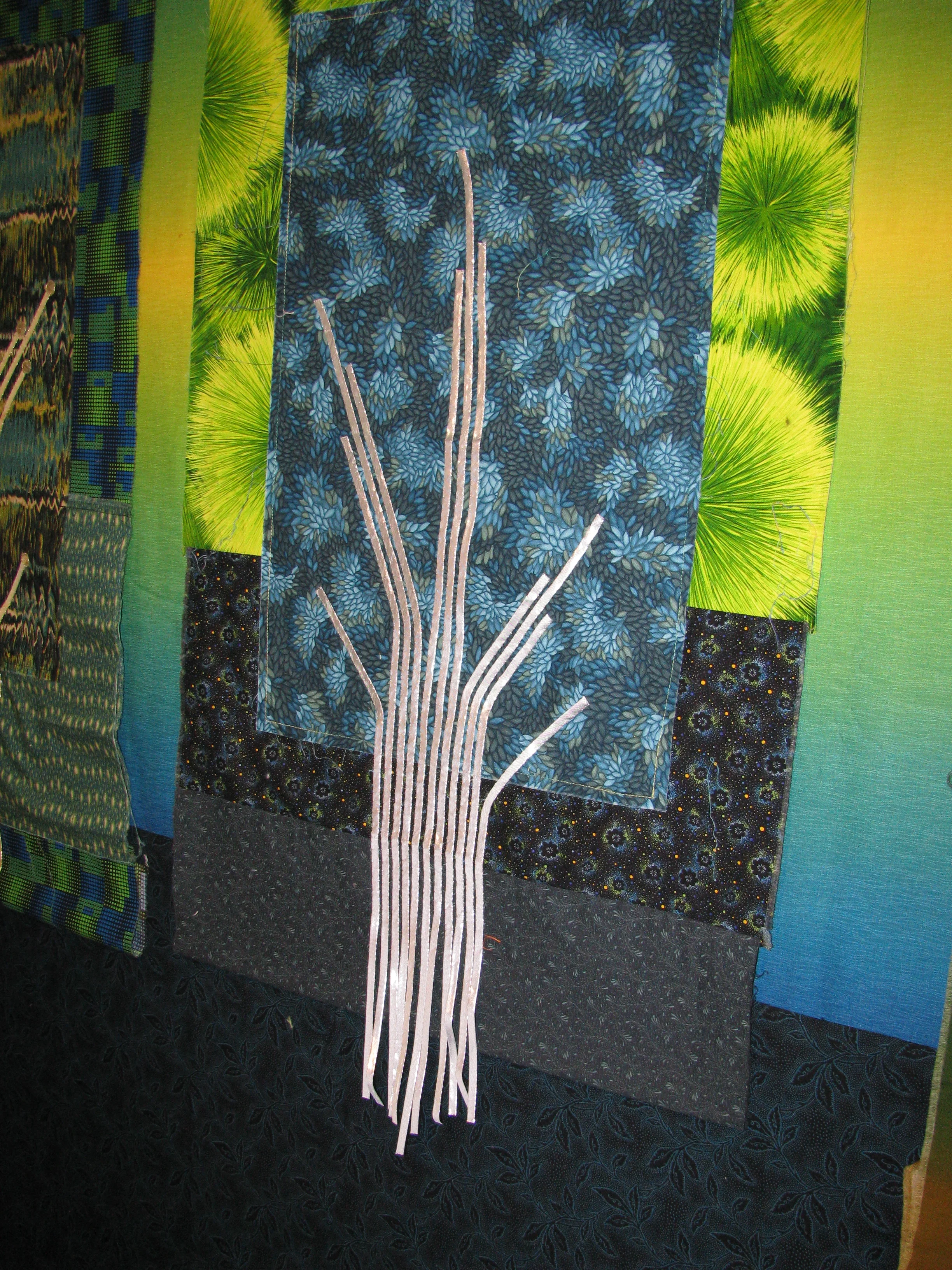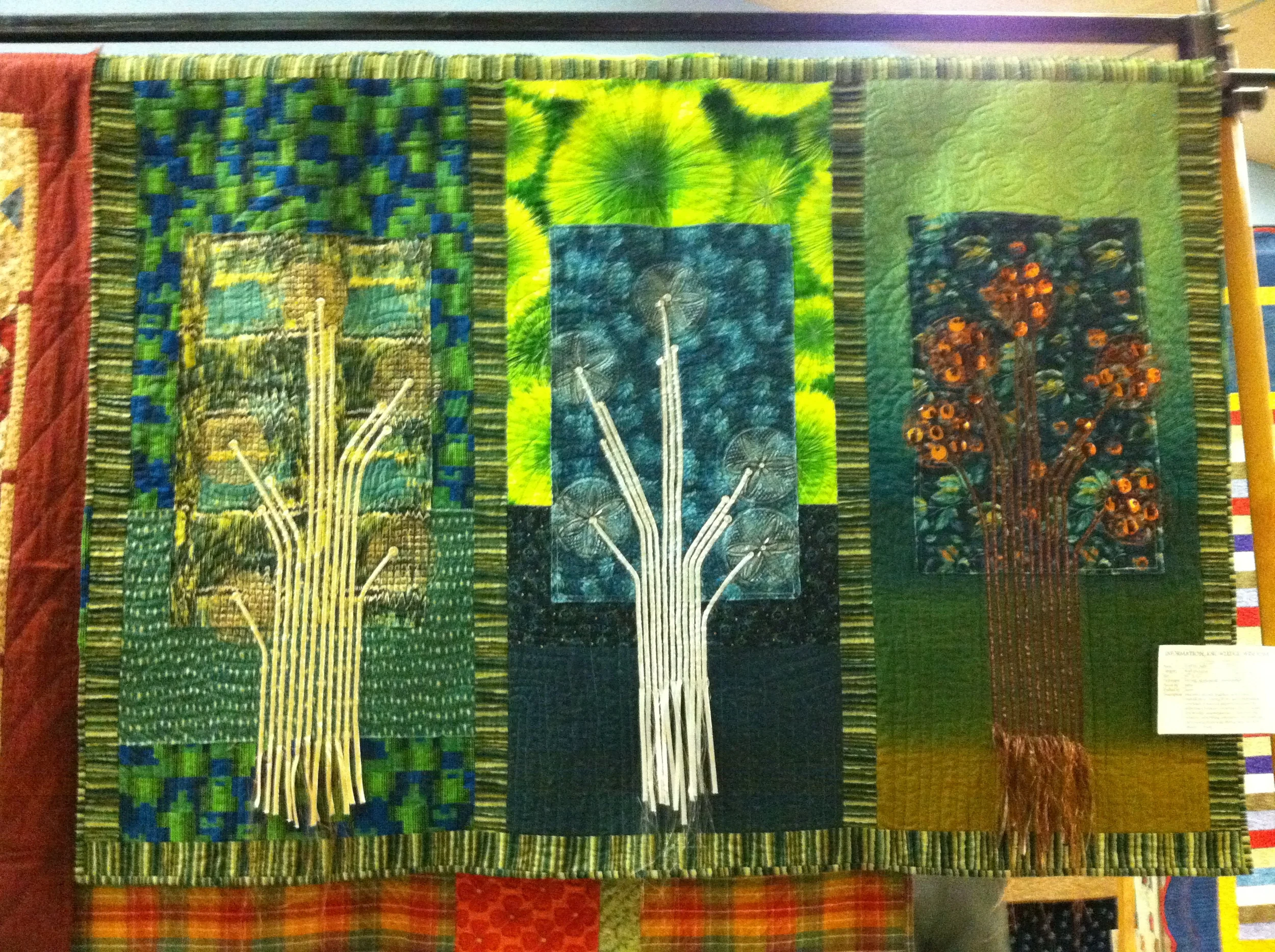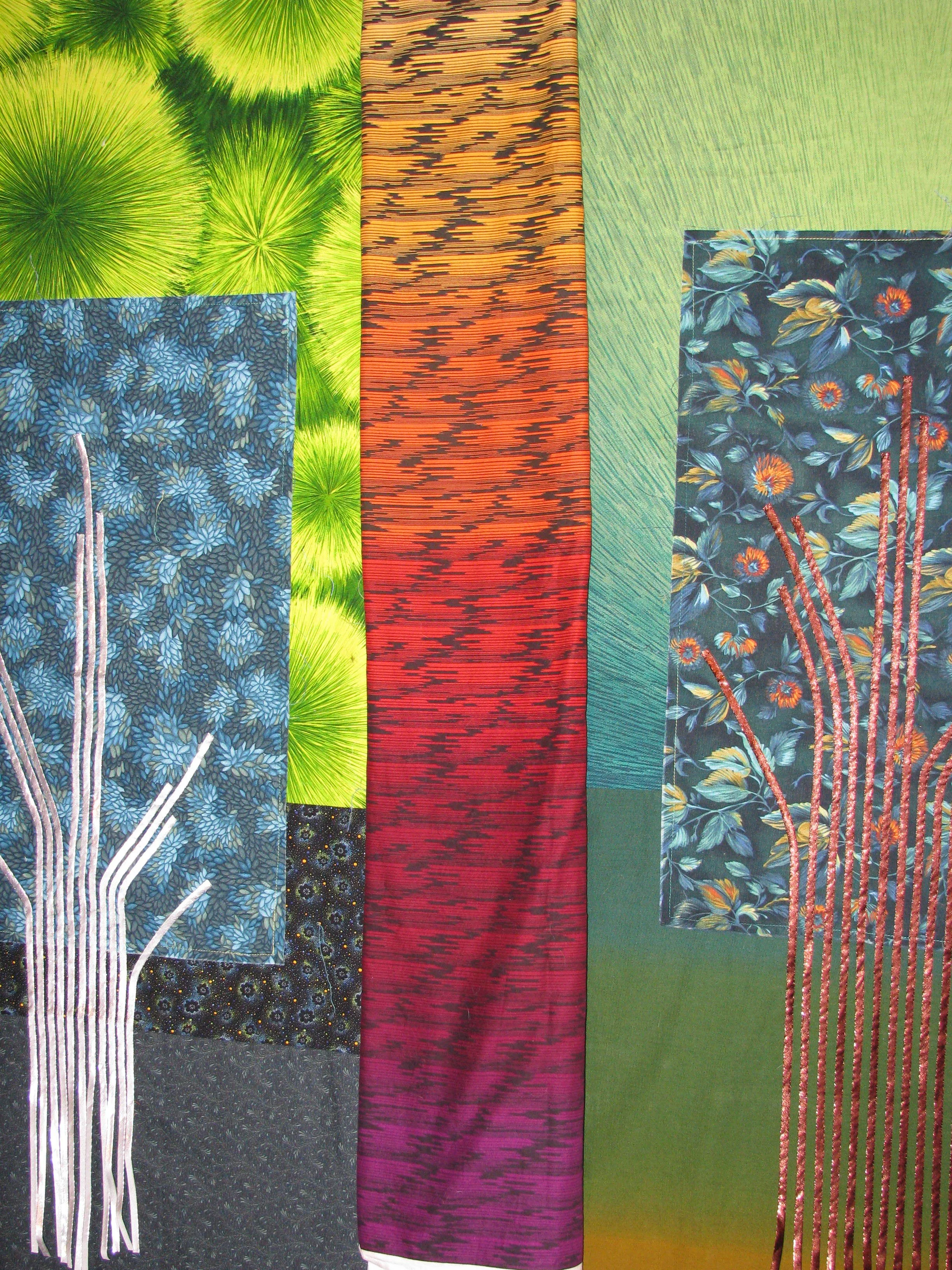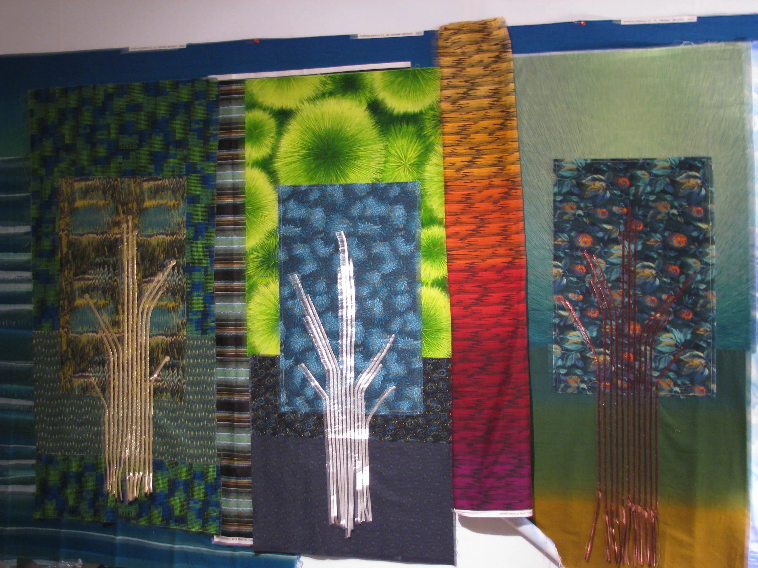 A thoughtful viewer at a recent quilt show suggested that I should add another panel to the quilt for "Reflection"; maybe a quiet pond at the foot of the trees?