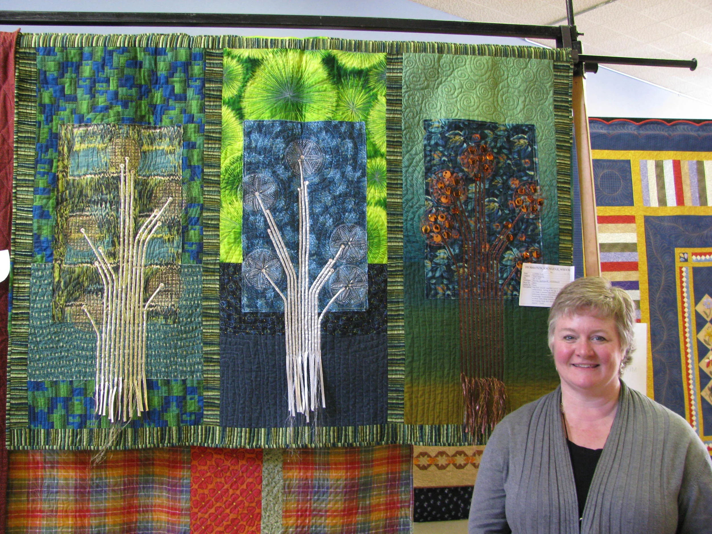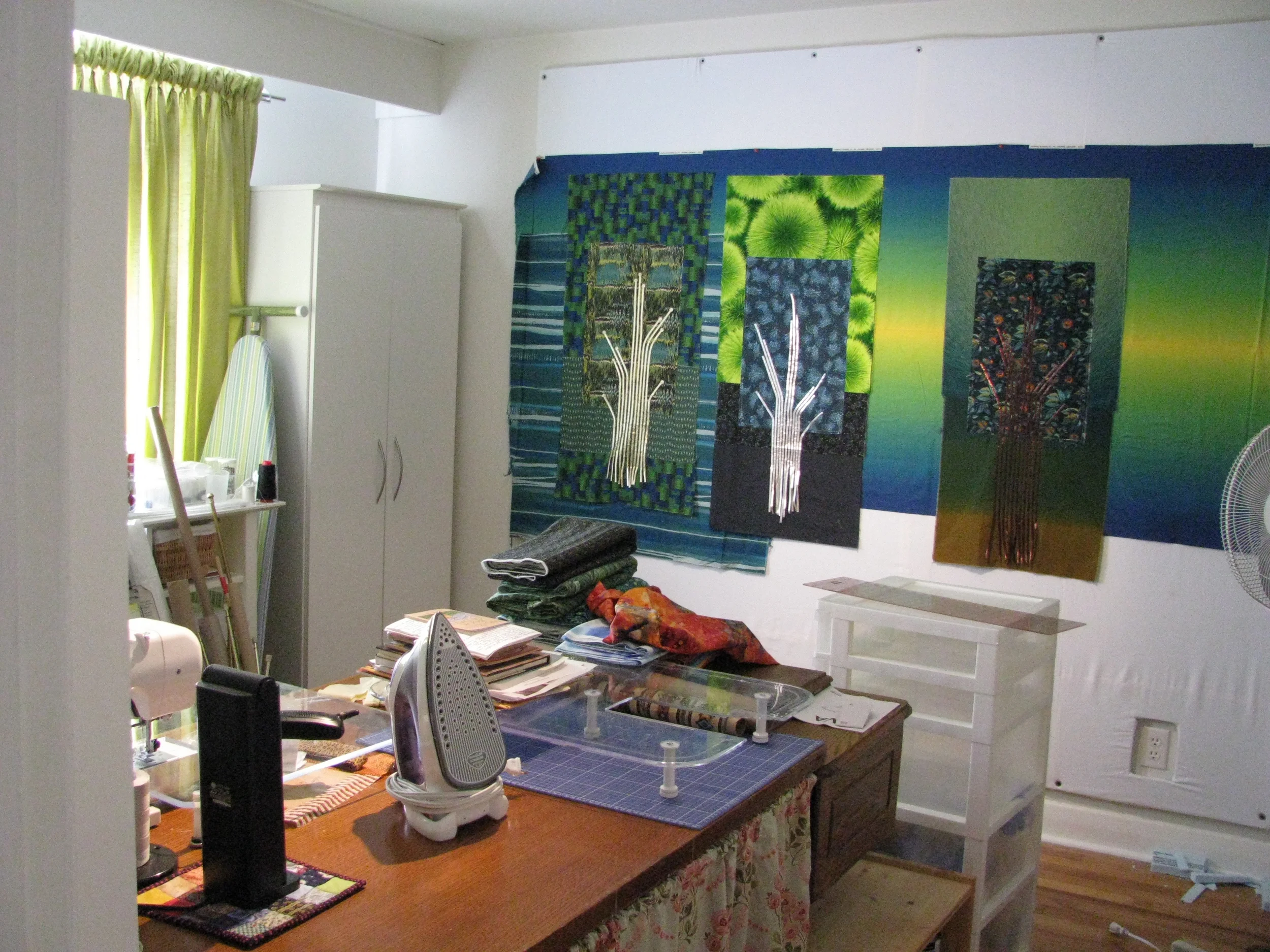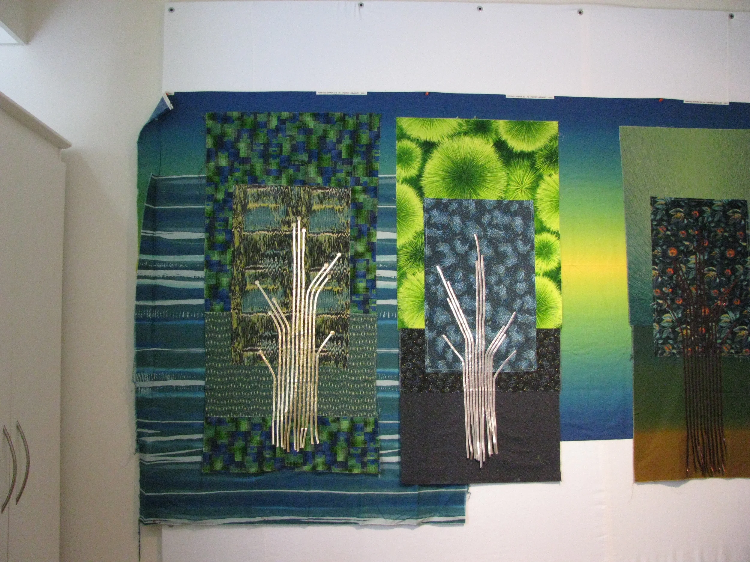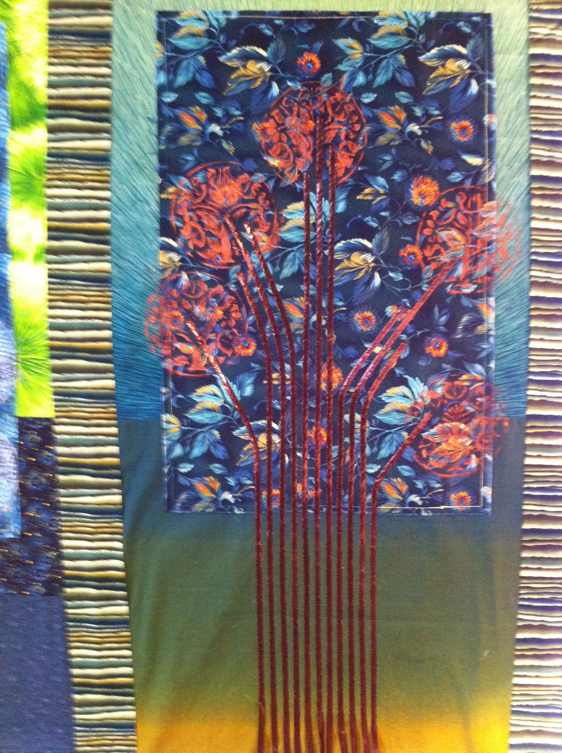 A thoughtful viewer at a recent quilt show suggested that I should add another panel to the quilt for "Reflection"; maybe a quiet pond at the foot of the trees?