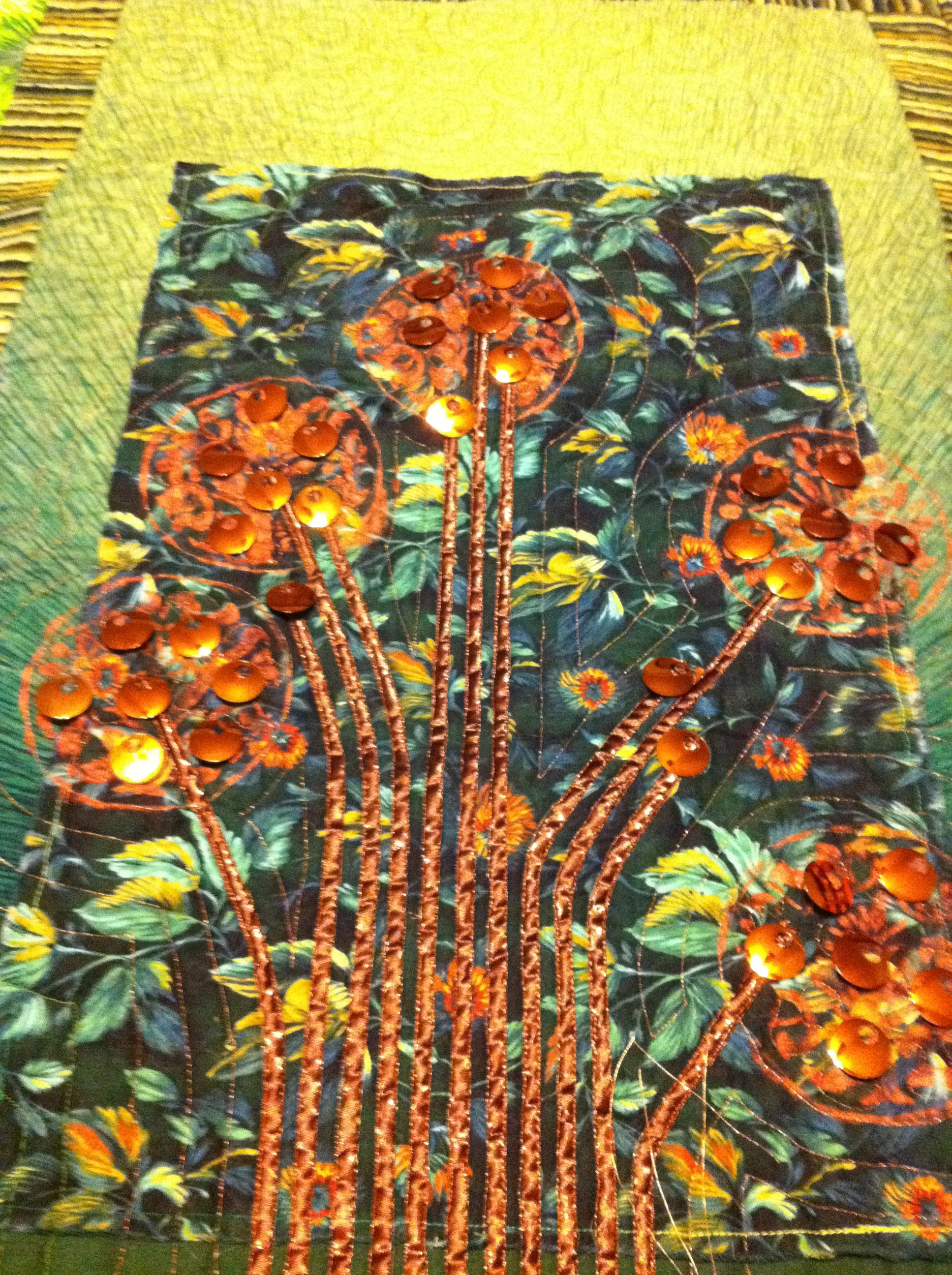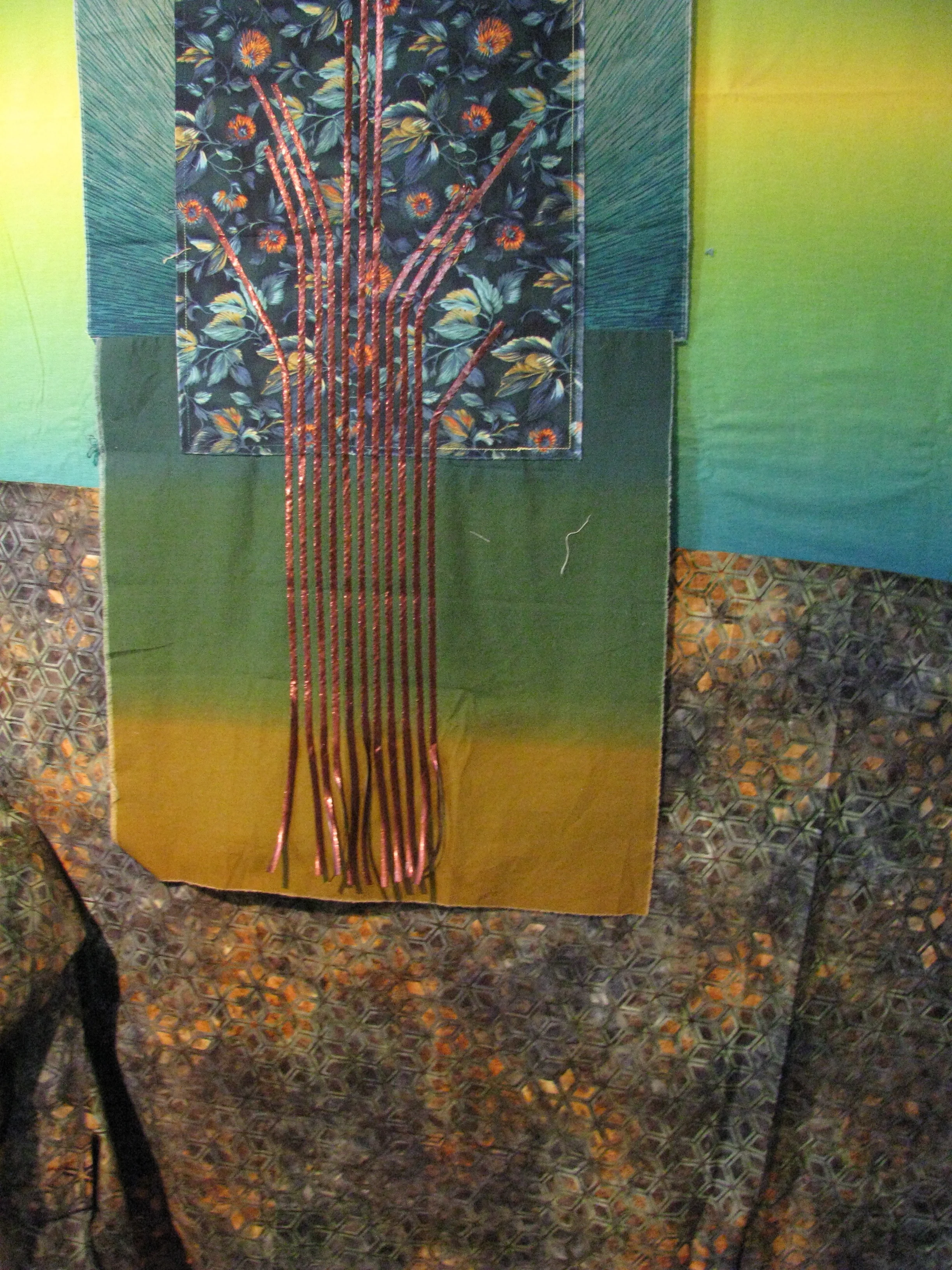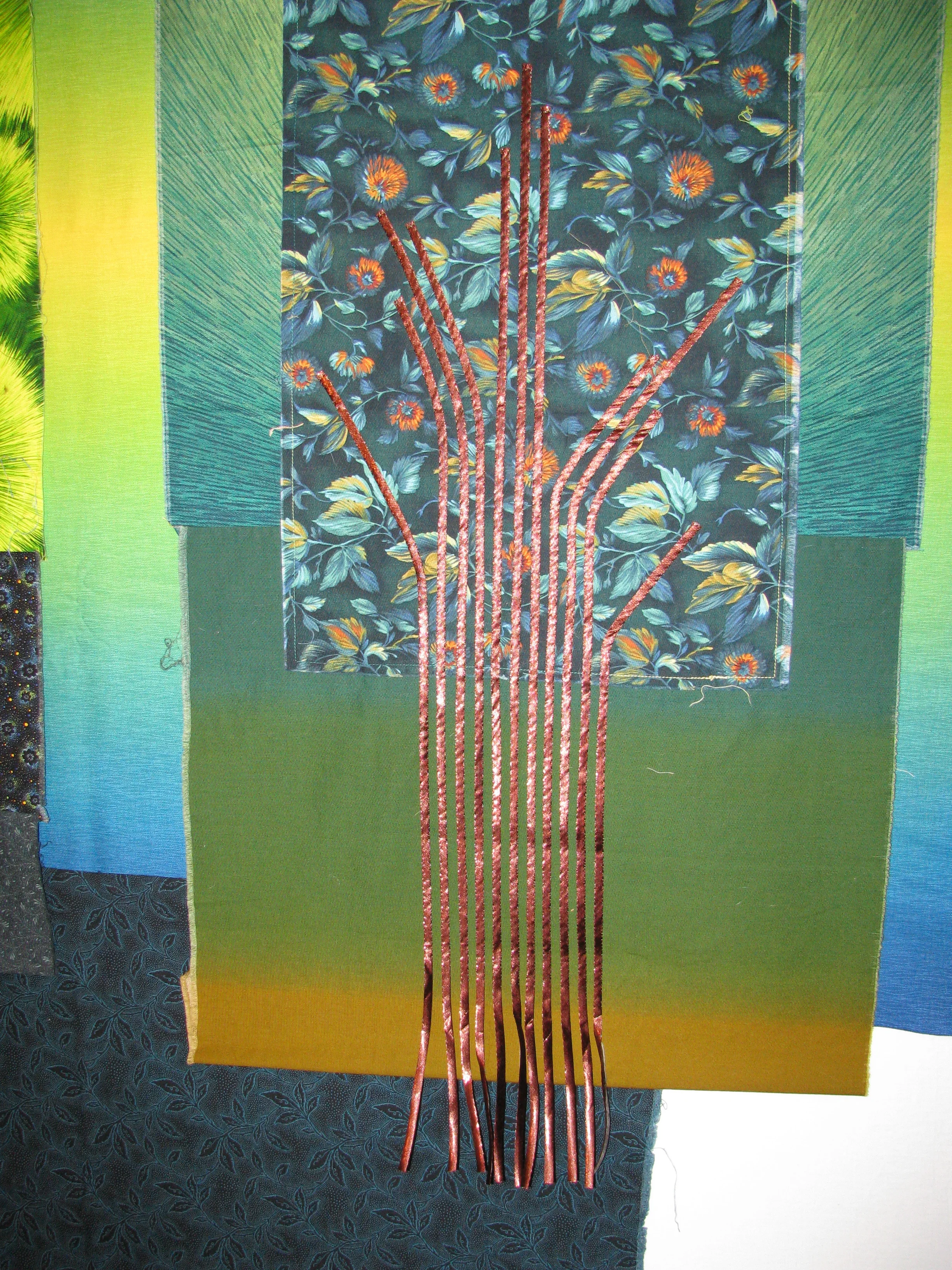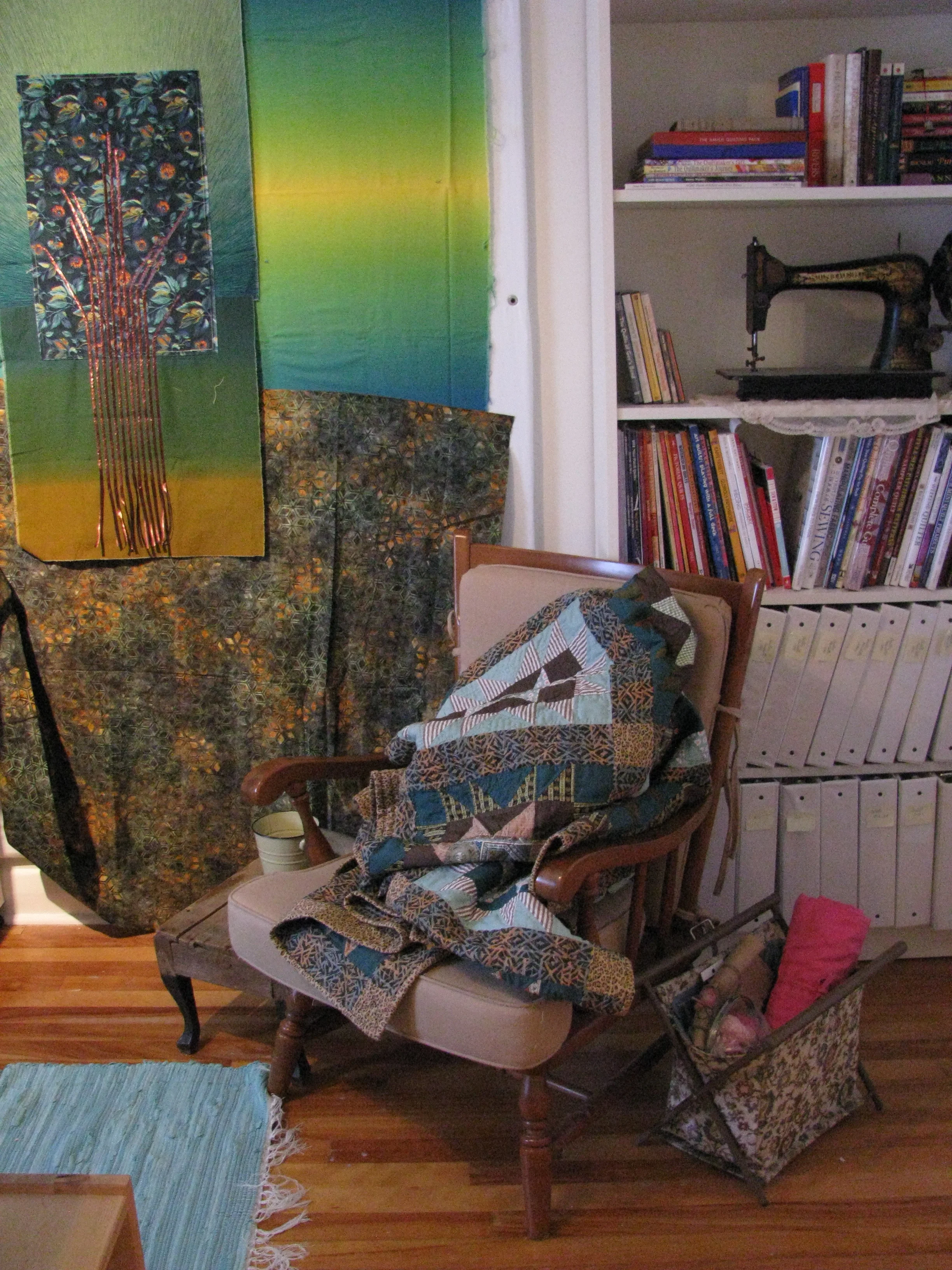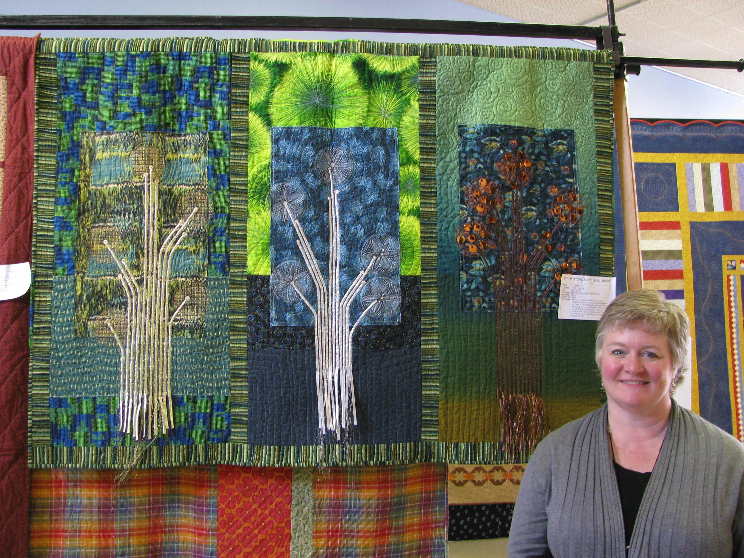 A thoughtful viewer at a recent quilt show suggested that I should add another panel to the quilt for "Reflection"; maybe a quiet pond at the foot of the trees?