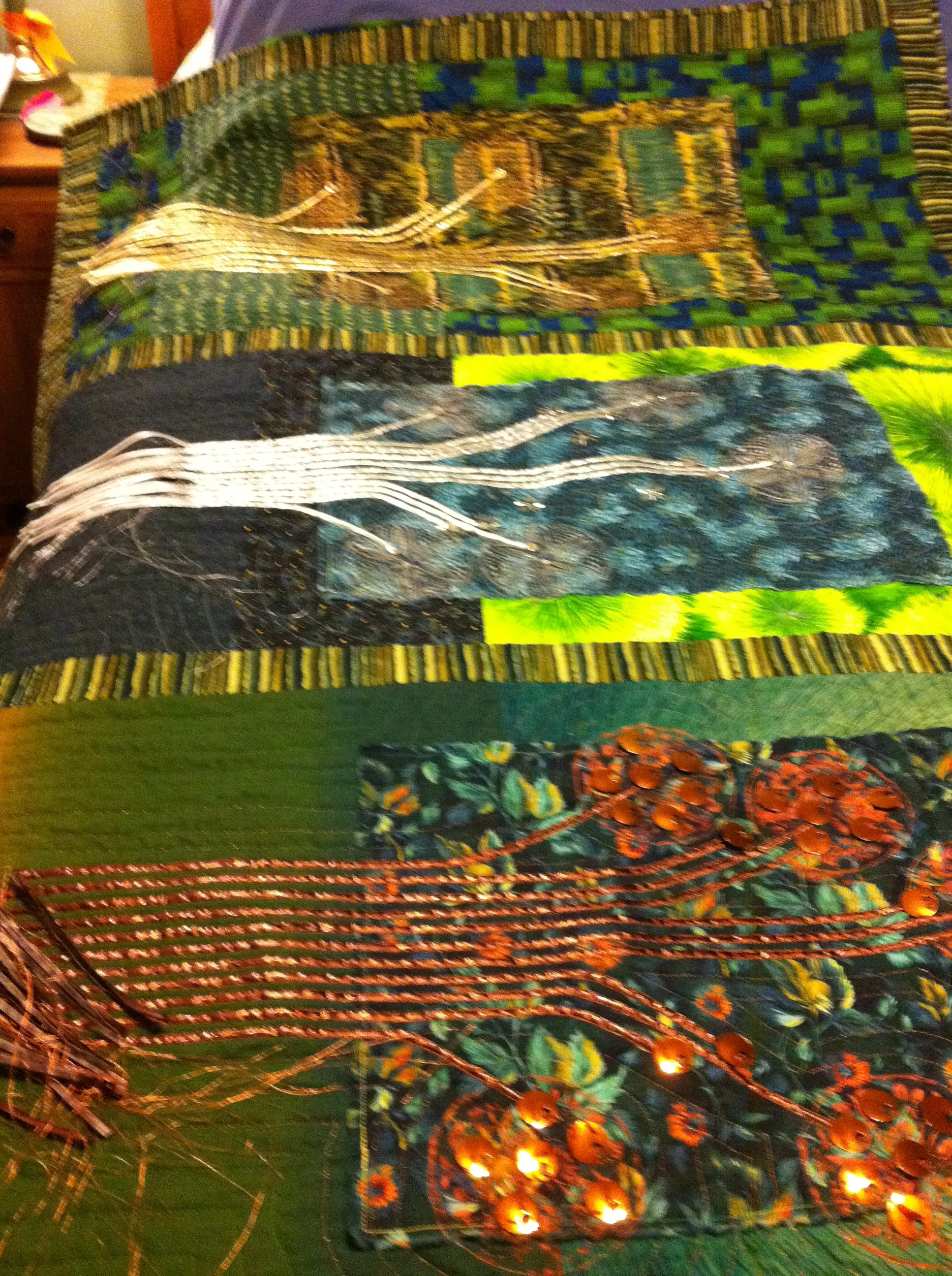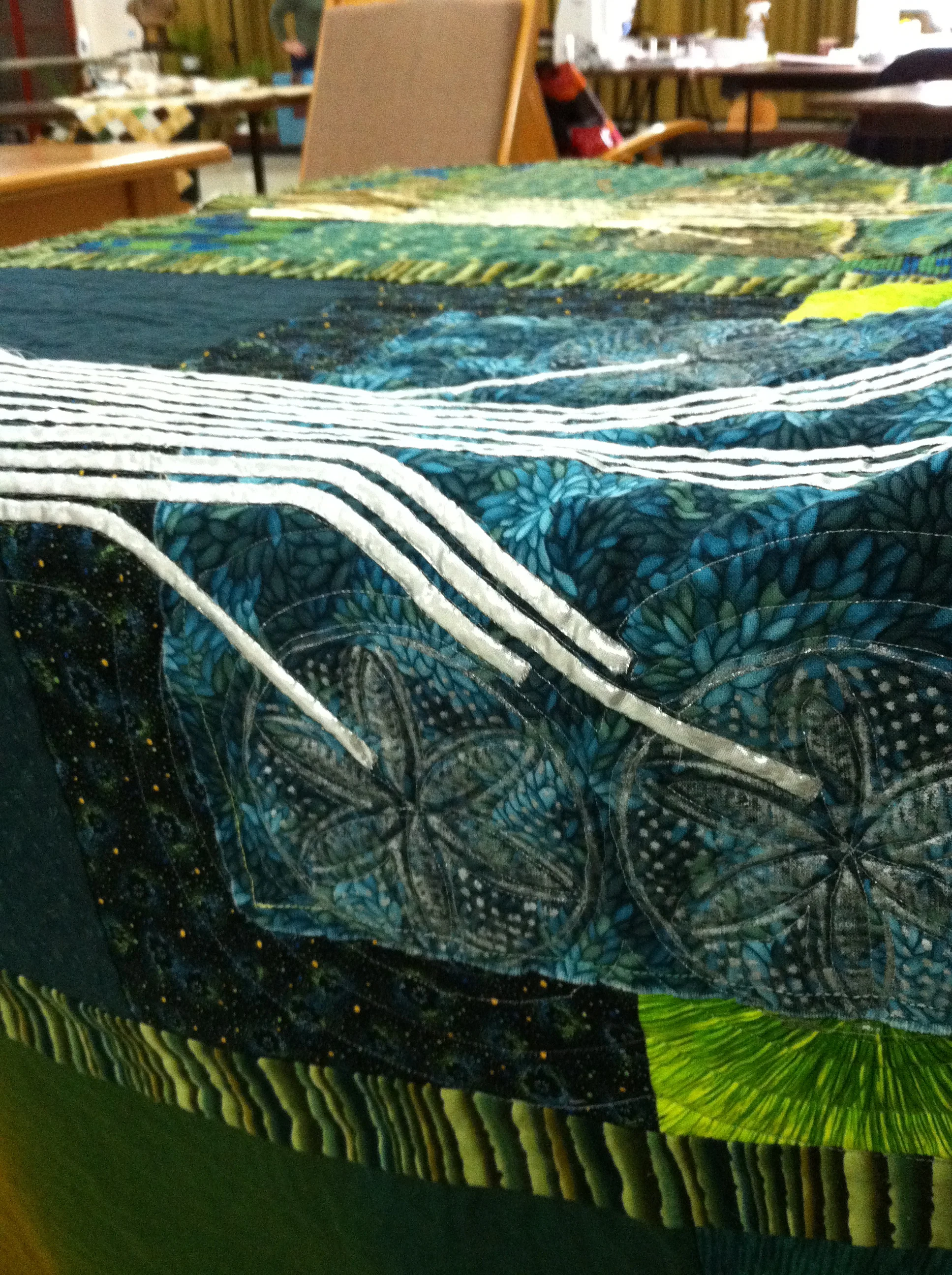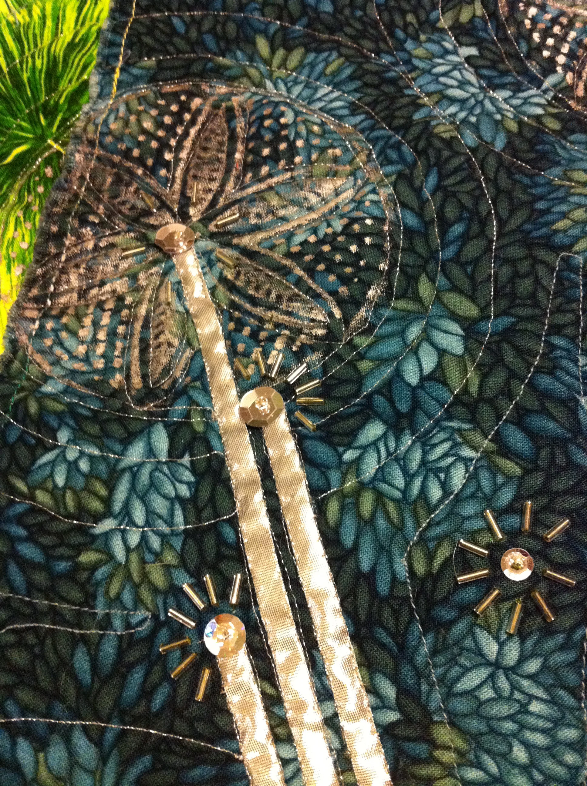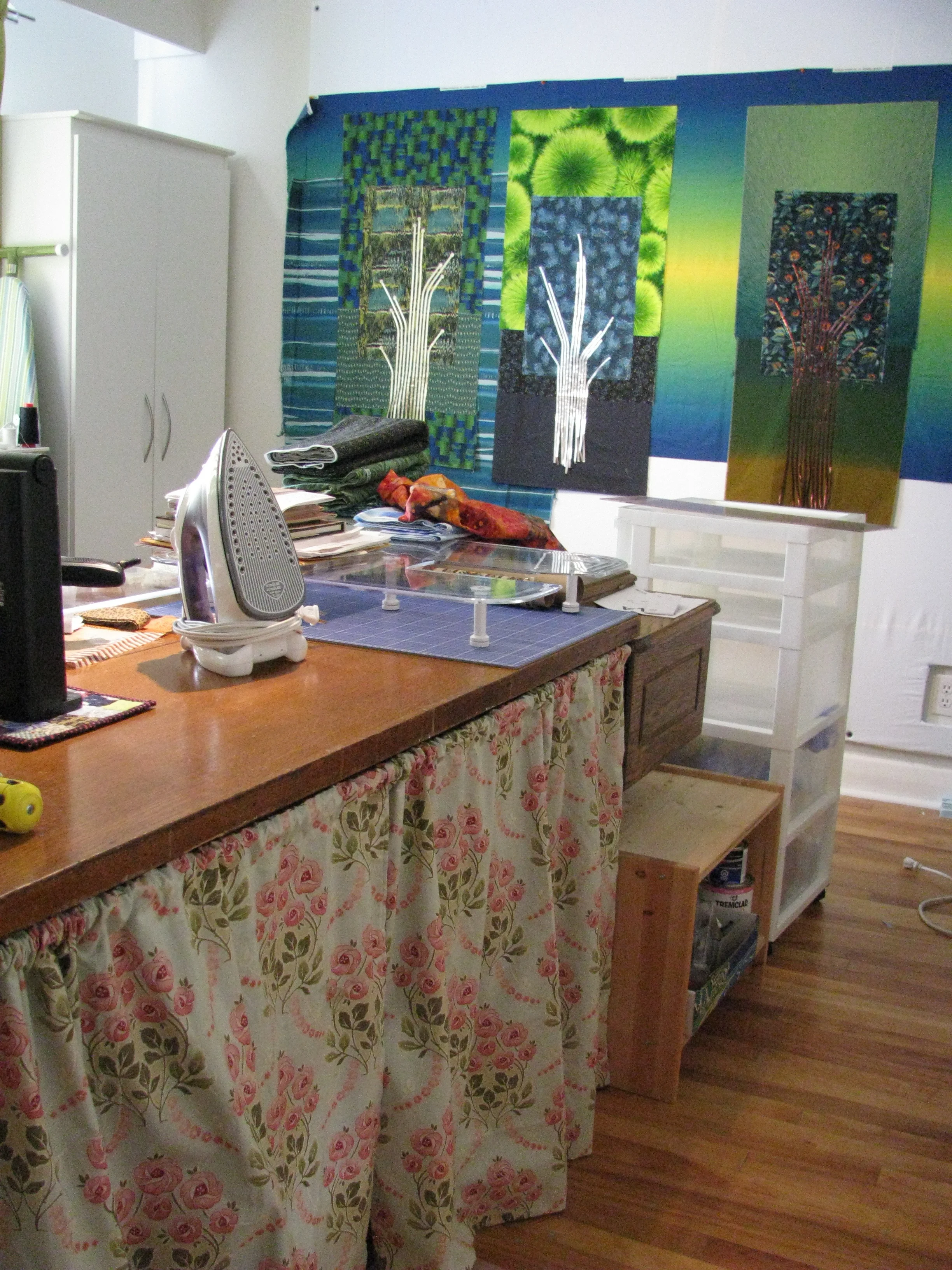 A thoughtful viewer at a recent quilt show suggested that I should add another panel to the quilt for "Reflection"; maybe a quiet pond at the foot of the trees?