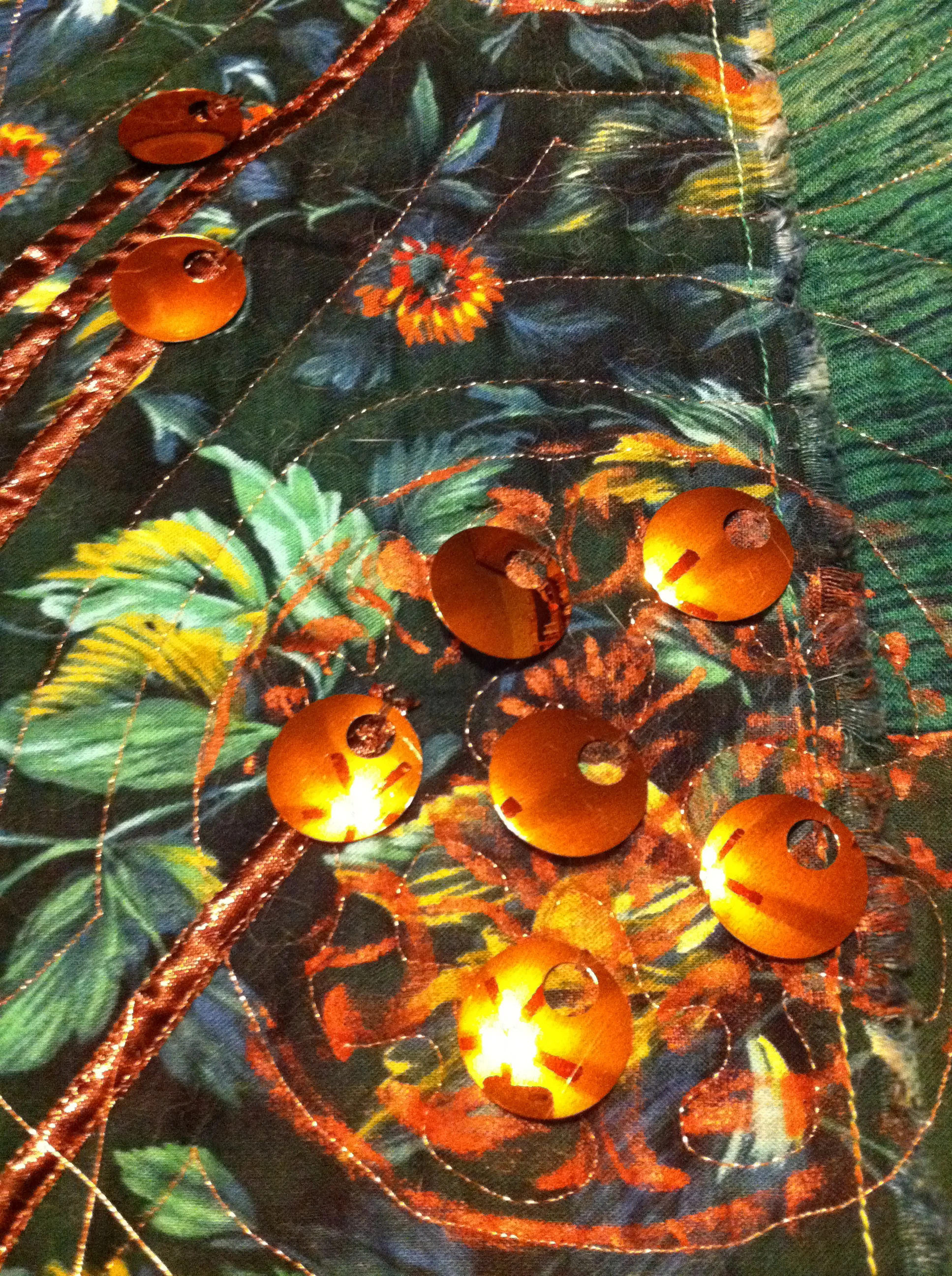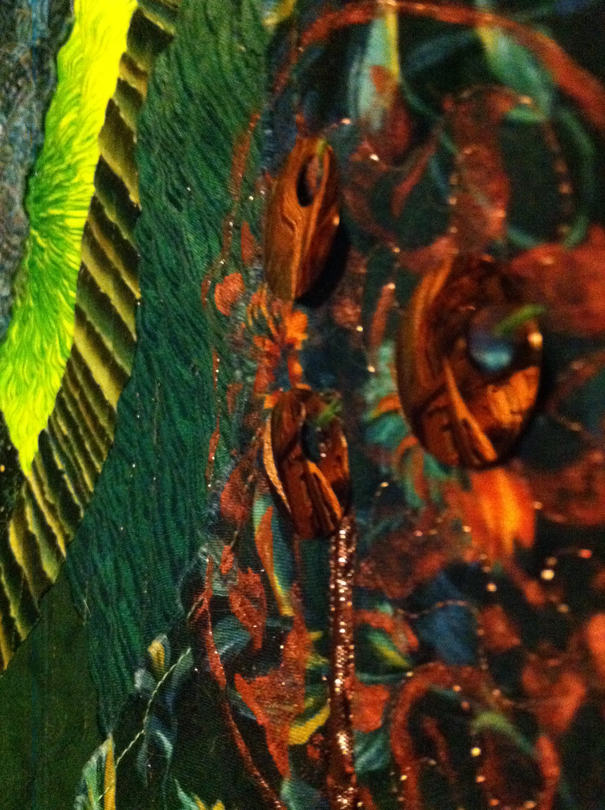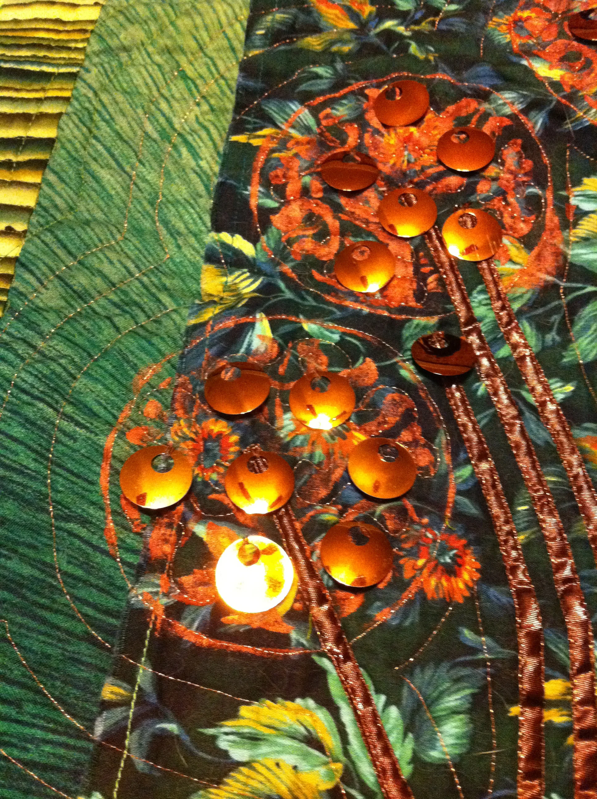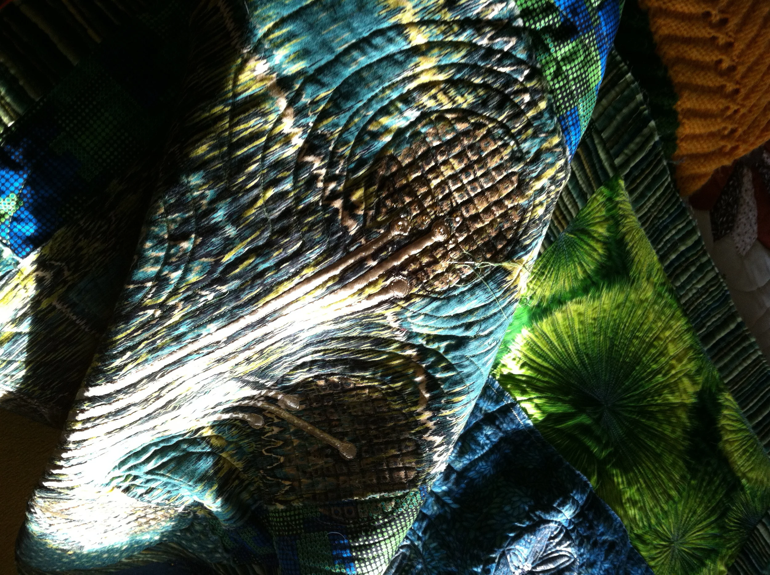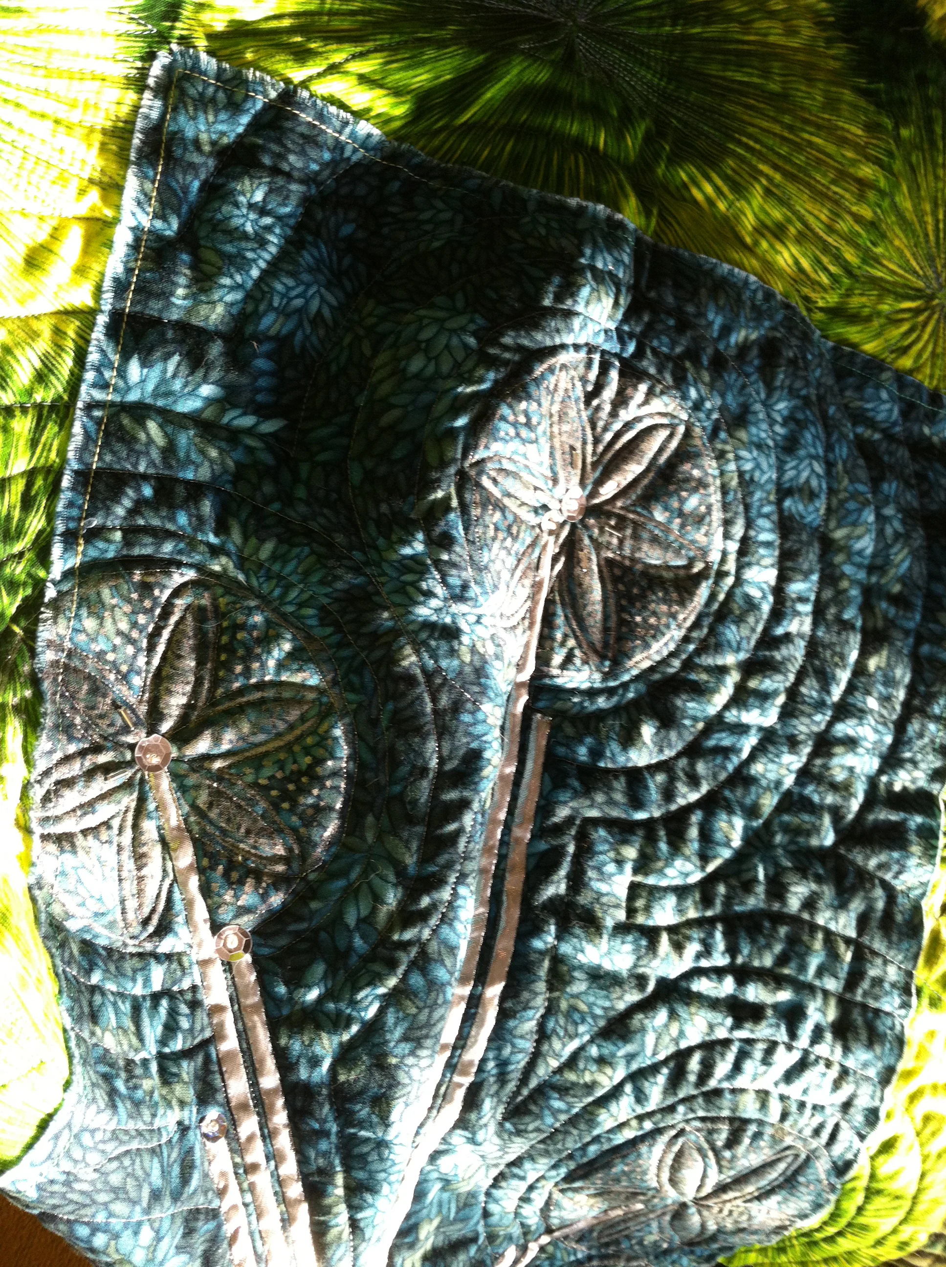 A thoughtful viewer at a recent quilt show suggested that I should add another panel to the quilt for "Reflection"; maybe a quiet pond at the foot of the trees?